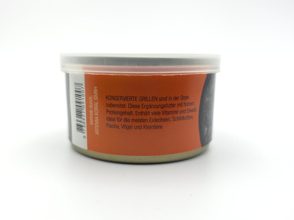 Die konservierten Grillen sind direkt aus der praktischen 35 g Dose verwendbar – kein Auftauen, kein Einfrieren, kein Verderb.